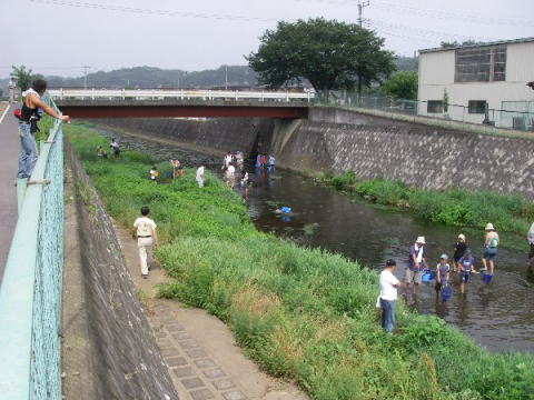 7月27日に入間市内の中神地区において、今年も「霞川水辺の生き物調査体験教室」が開催されました。このイベントは霞川をきれいにする会がNPO法人バーブレスフック普及協会に運営委託を行い今年で2回目となります。 市内の小学生を中心に約20名の学童と保護者が参加しました。今回の調査の結果、魚類は2目3科6種類の魚が確認されました。(コイ、オイカワ、カワムツ、ドジョウ、シマドジョウ、ギバチ) |